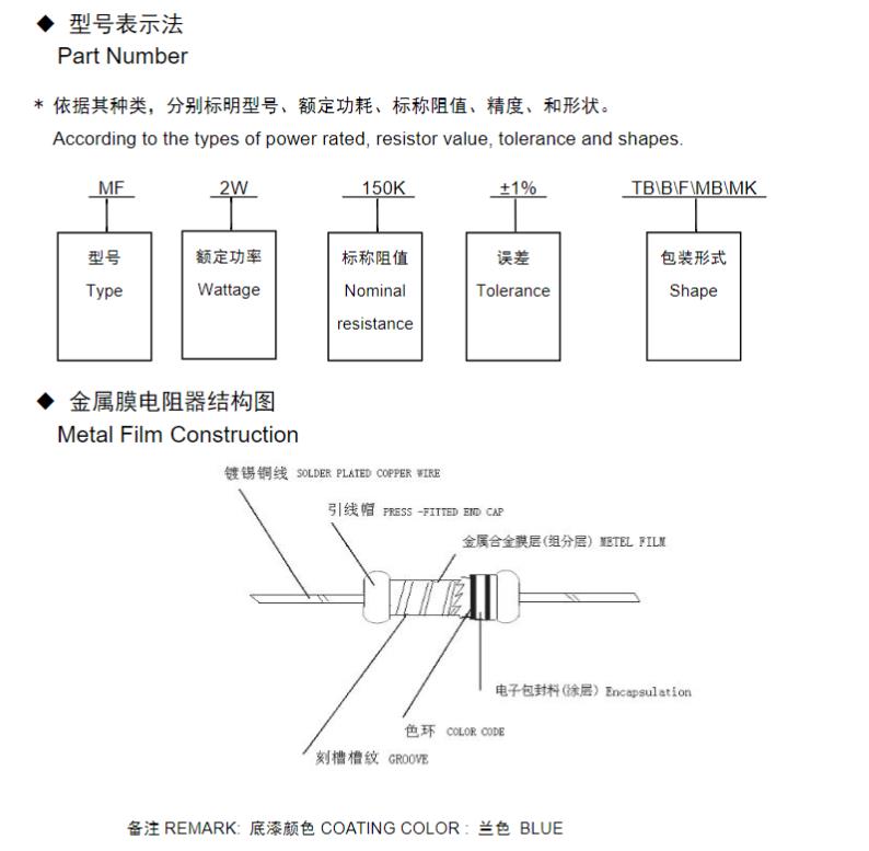风华金属膜电阻器命名规则: